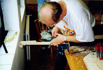 Foto 3 · Der Hals wird bearbeitet, die Schnecke – in diesem Fall ein Adlerkopf – ist schon fertig.