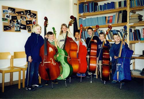 Wenn bei einem Kind der Abstand zwischen dem 1. und dem 4.Finger (bequem am Kontrabasshals gegriffen) 8 cm beträgt, ist der 1/16 – Bass richtig. Die Formel dafür: Fingerspanne x 9.