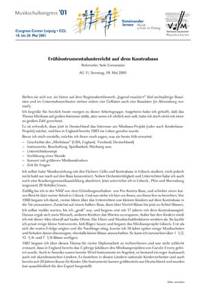 Es ist erfreulich, dass jetzt in Deutschland das Interesse am Minibass-Projekt (oder auch Kinderbass-Projekt) wächst, welches in England bereits 1983 ins Leben gerufen wurde. Bevor ich mich vorstelle, möchte ich ihnen noch sagen, was sie heute früh erwartet: